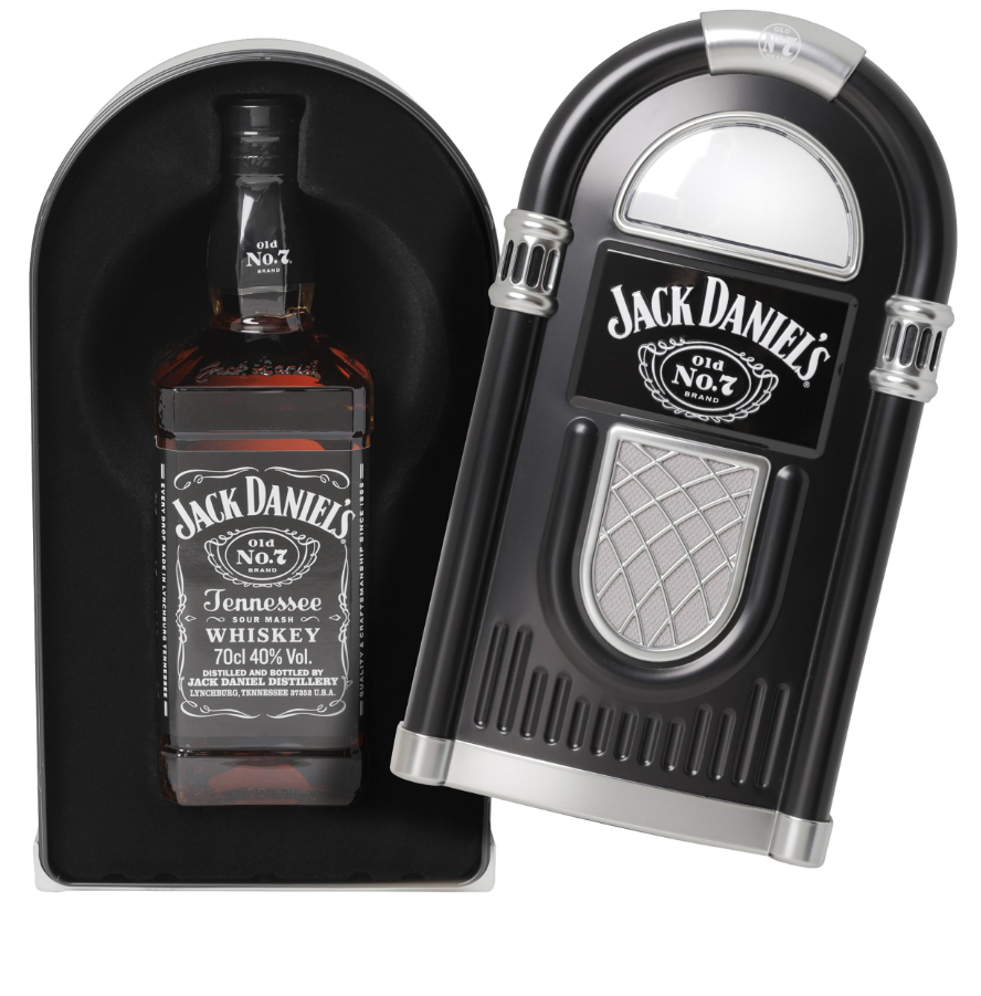 - Jack Daniel’s Old No. 7 Tennessee Whiskey Jukebox Case: This is a gift pack designed by Hunter Luxury that includes a 70cl bottle of the classic Old No. 7 whiskey.